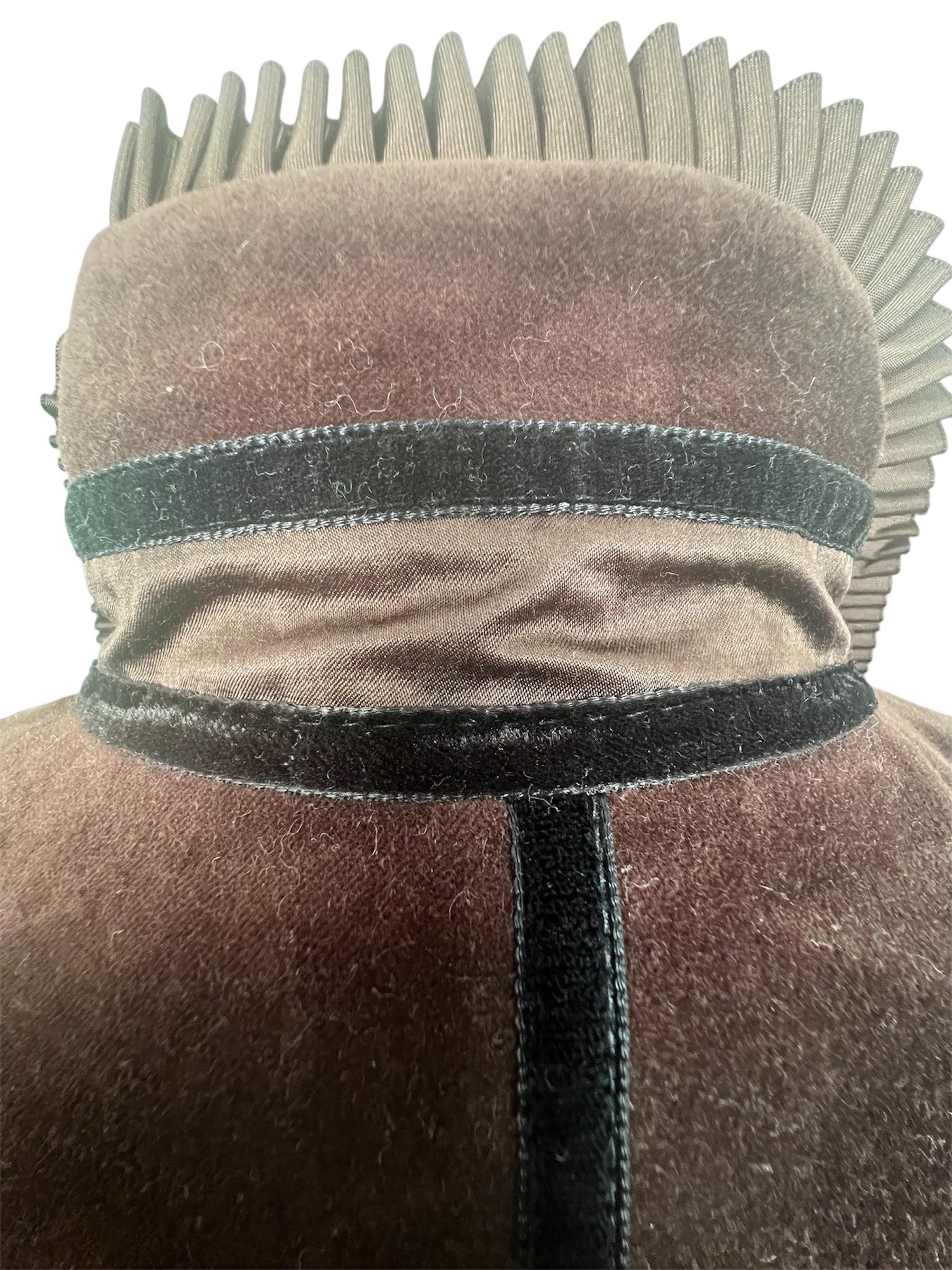 - Rückseite schlicht aus Samt, mittig mit schmalem schwarzem Band verziert