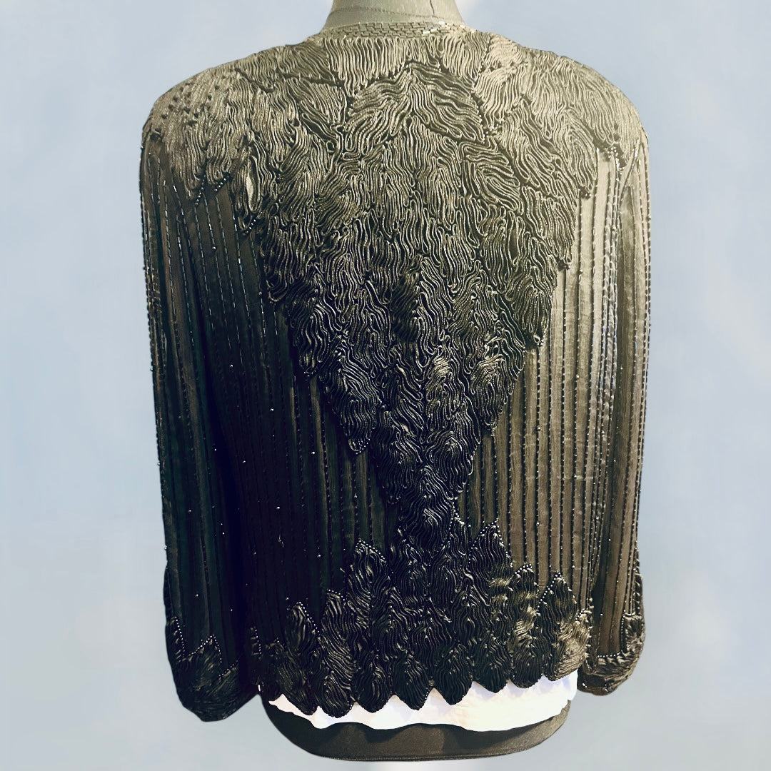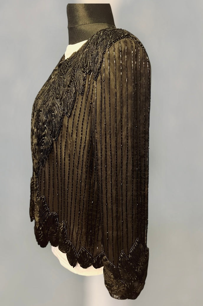 Vintage Seiden Bolero 40 Augustat GmbH India Schwarz Glanz