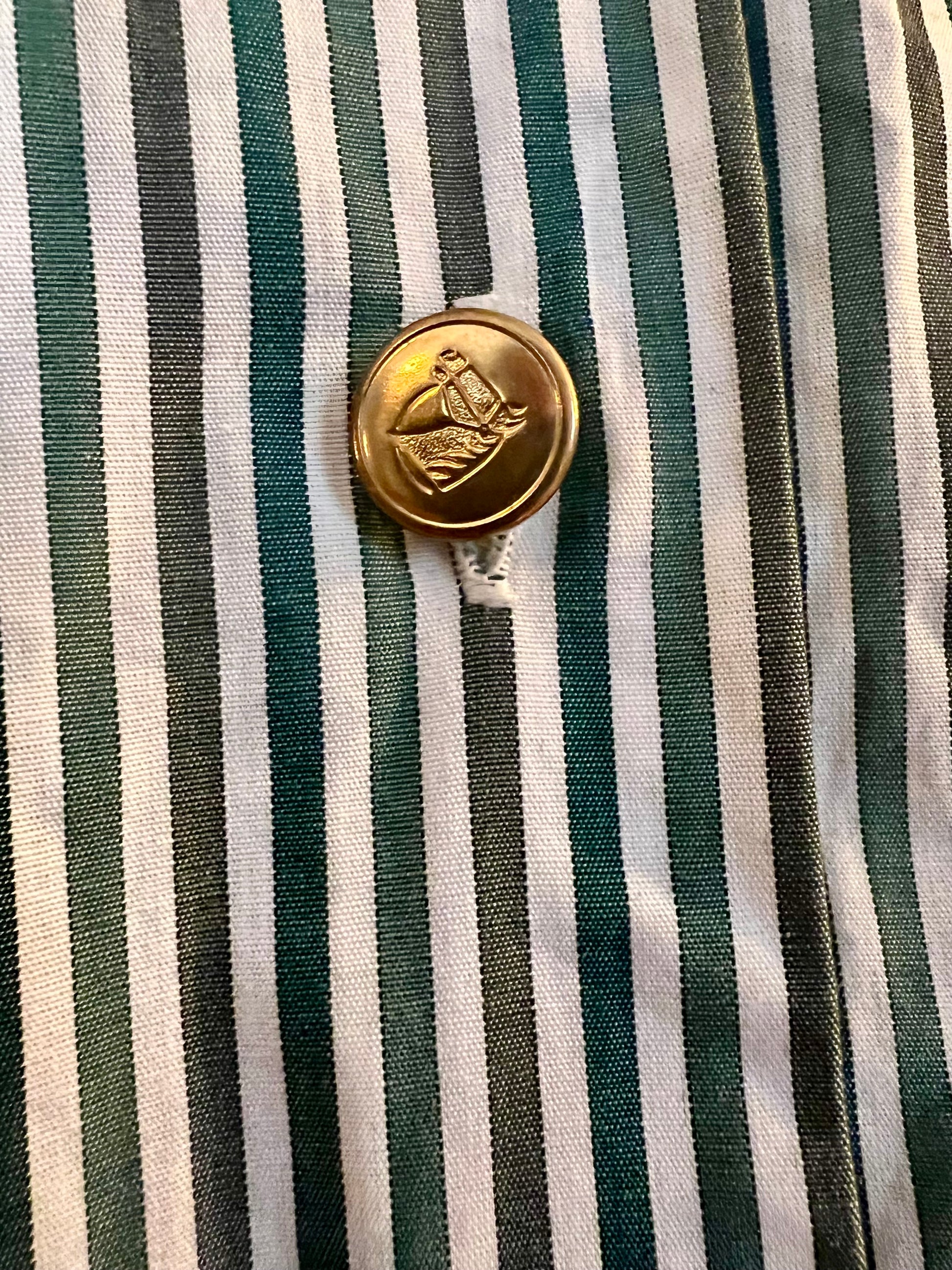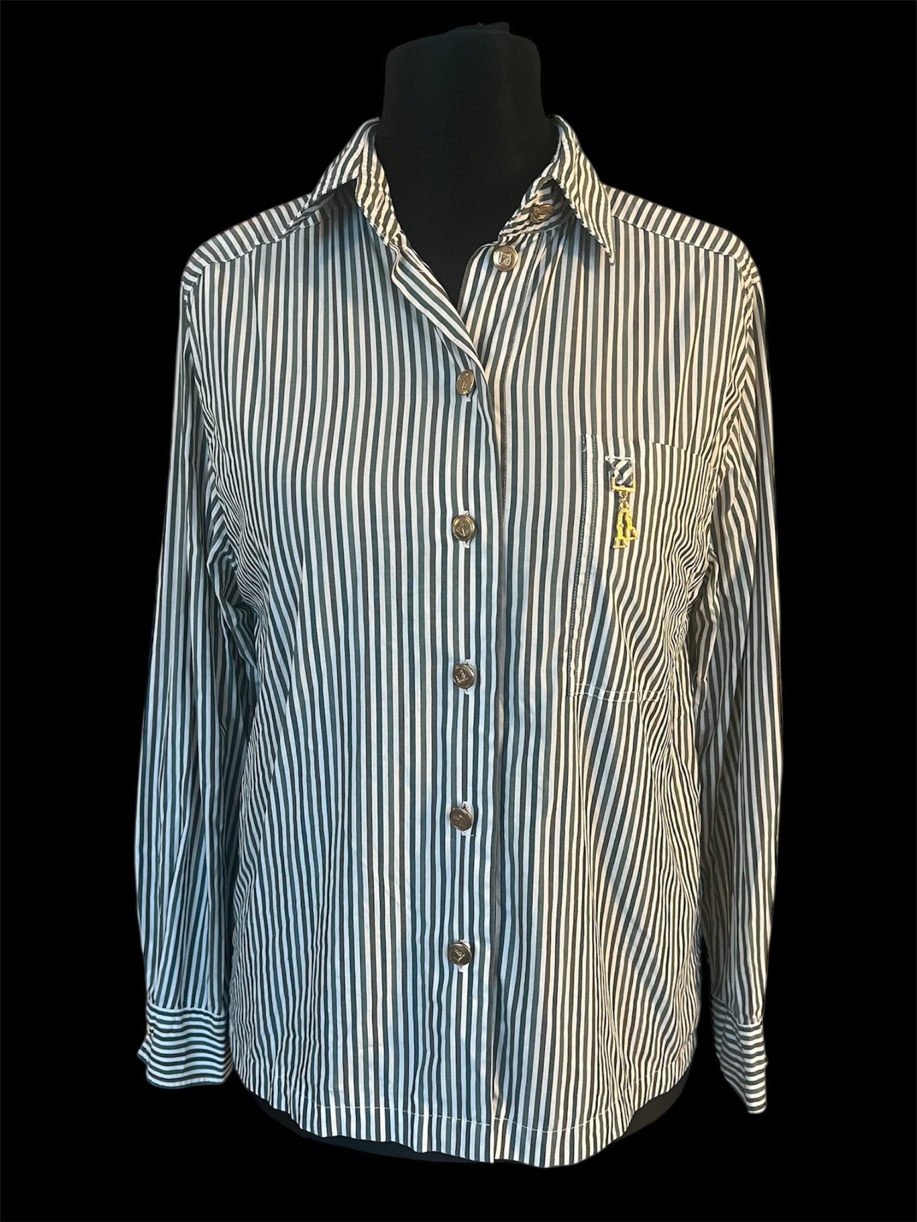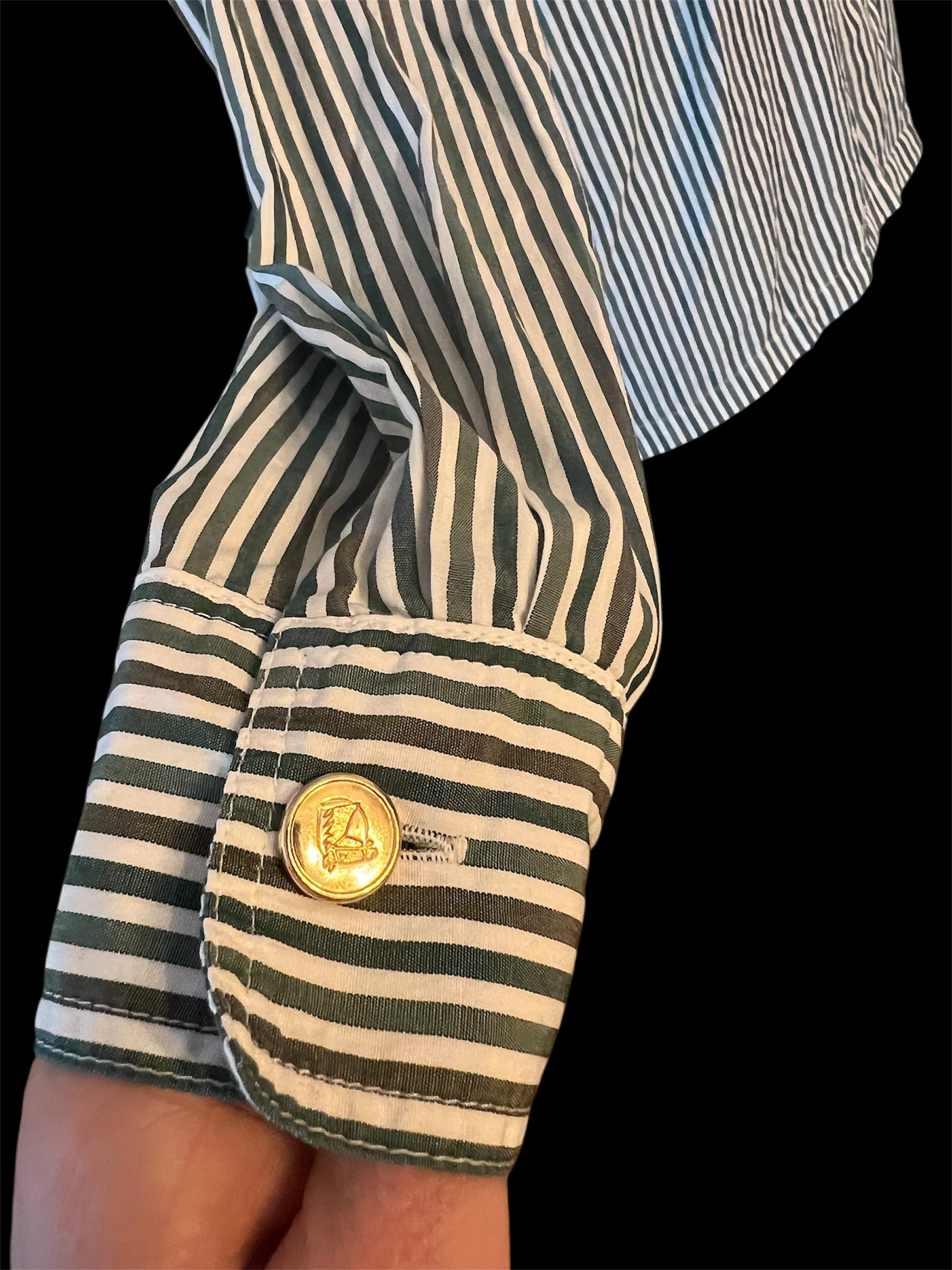 Vintage Tru Bluse Gr. 40 – Weiß mit grünen Streifen | Goldknöpfe | 90s Chic