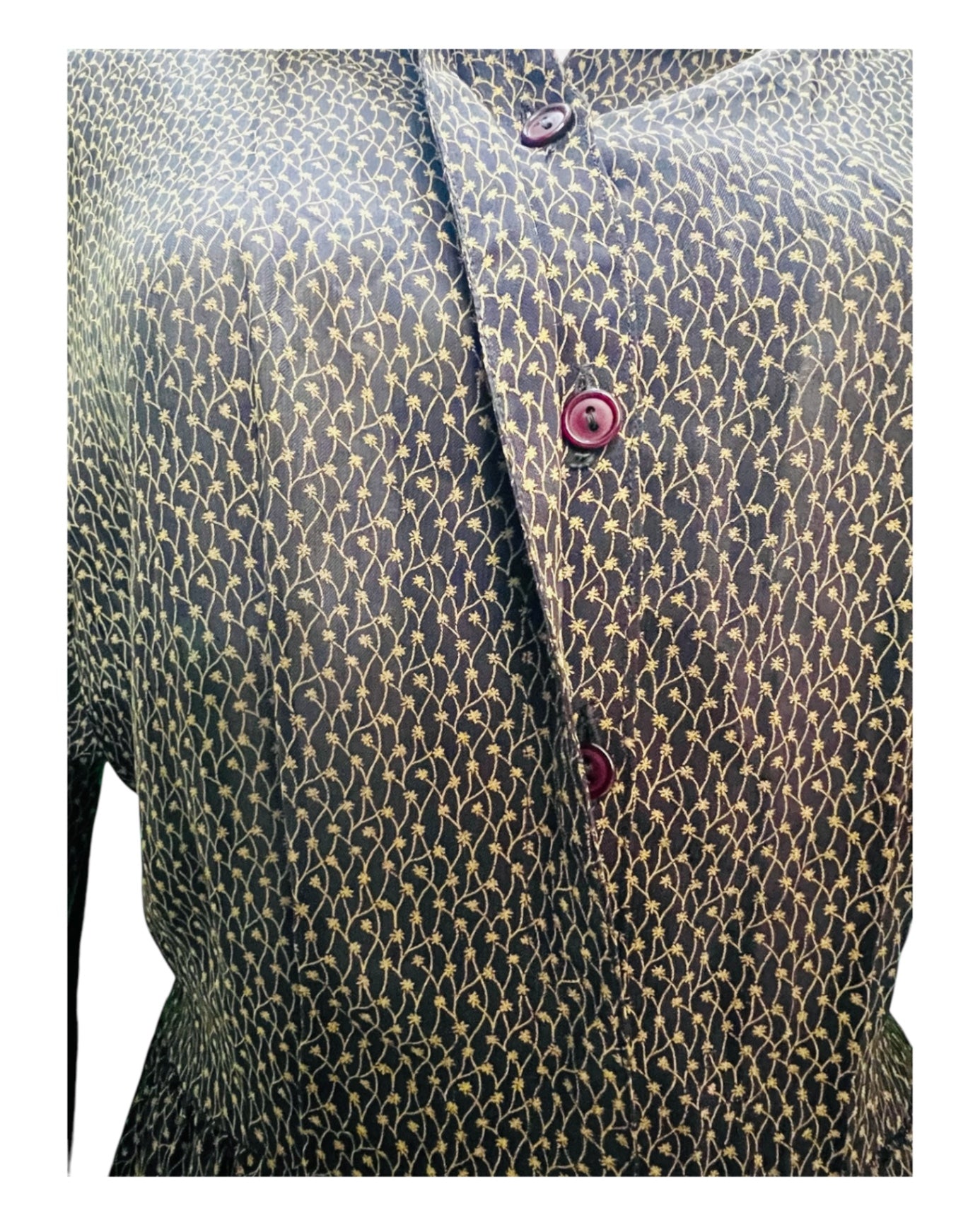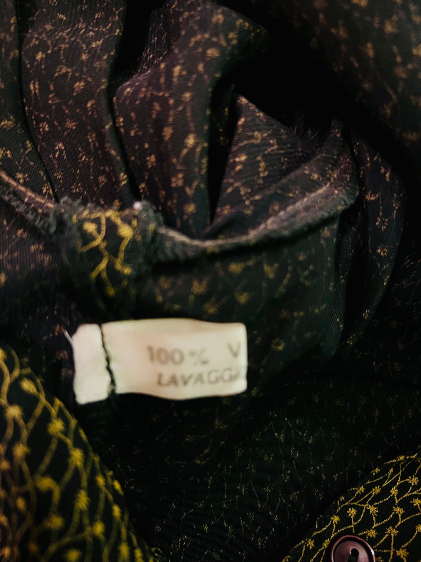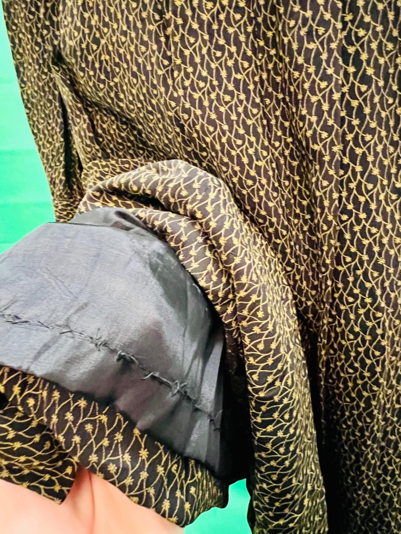 Trage mit diesem einzigartigen Vintage Kleid in Schwarz mit gelben Details in Größe 38/40 zu einem nachhaltigen und stilbewussten Look bei. Dieses außergewöhnliche Einzelstück aus 100 % Viskose verleiht deinem Outfit das gewisse Etwas und setzt ein Statement für einen nachhaltigen Kleidungsstil. Schöne Details plus eingenähtem Unterrock.