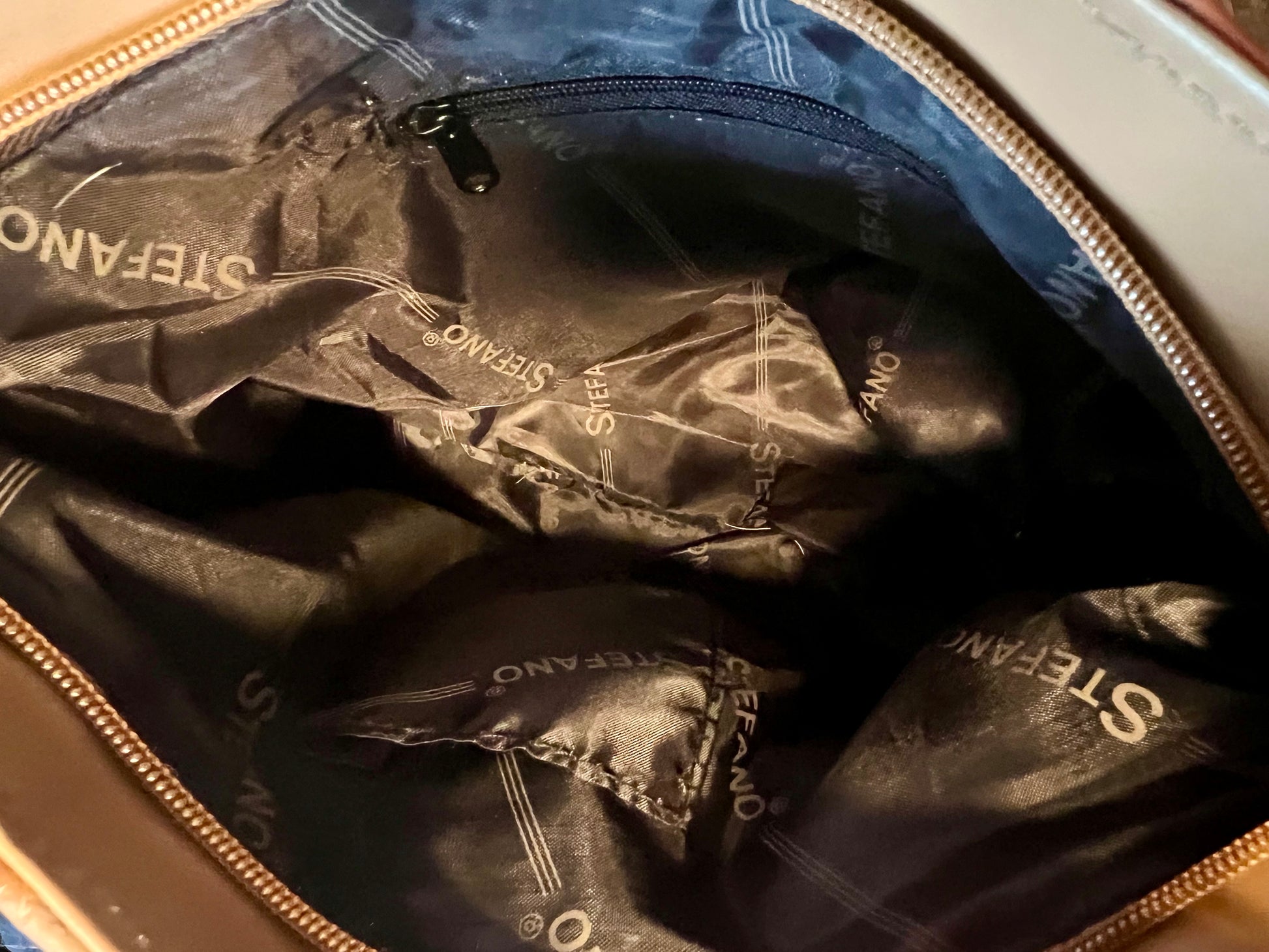 Vintage y2k Patchwork Tasche Braun/Beige – Stefano – Schultertasche – 31×21 cm